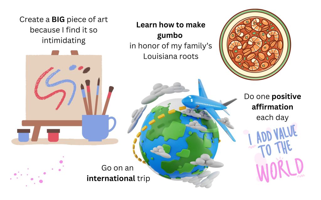 Speaking of things becoming a reality…Every year, I make a list of goals–things that I want to accomplish in the new year. And I review the list of goals from the previous year. It’s pretty cool to see things on that list go from idea to reality. Here are some of my goals for 2025.