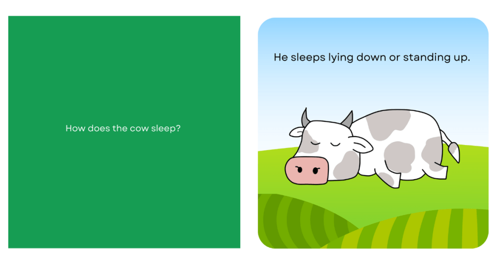 Humans may be different from other animals, but we have one thing in common. We sleep. Let’s find out how and where some animals sleep, starting with a farm favorite: the cow.
